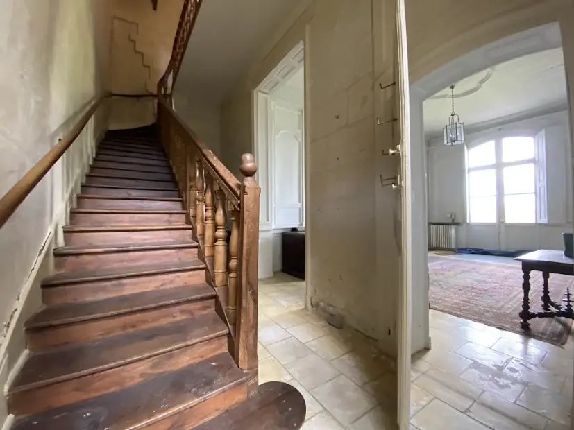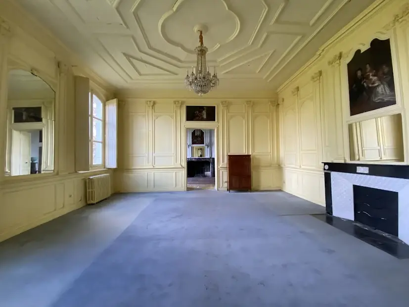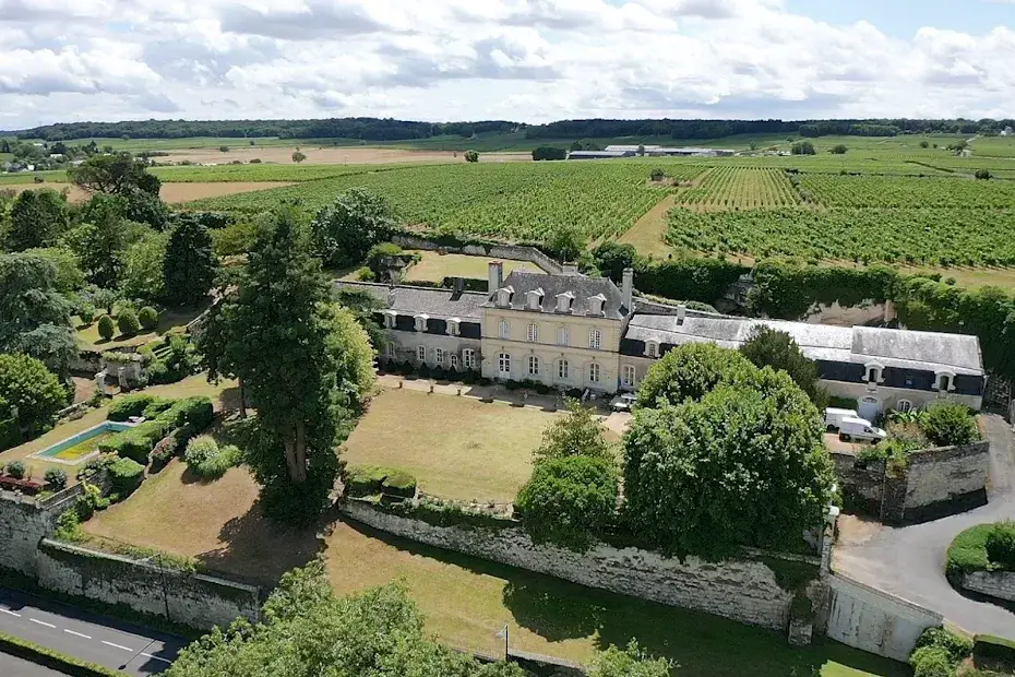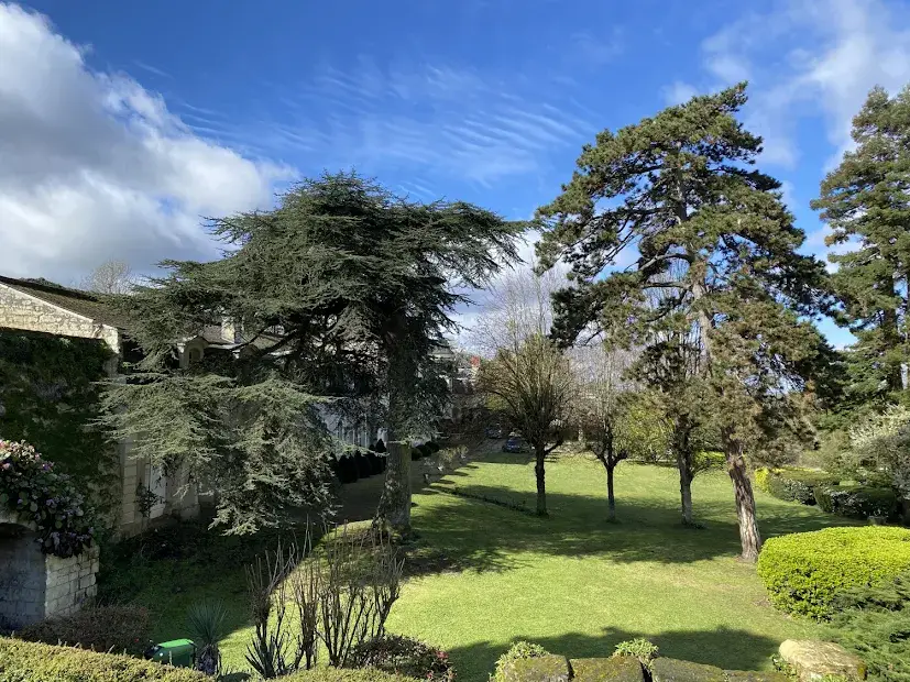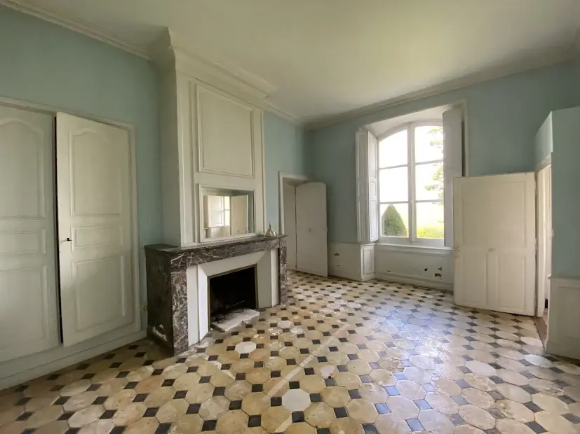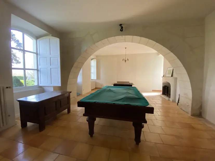 Elegant 17 th – 18 th century manor near Saumur and the Loire built on an eagle’s nest promontory, the property extends its long facade built in white tufa stones in the center of which rises the mansion on a floor and attics. On the ground floor, there are 5 reception rooms which follow one another in a row with their beautiful decorations of woodwork, terracotta tiles, fireplaces & painted overmantels, which give this house such a special atmosphere, to the point that a famous writer of American origin stayed there in the 1930s as reported in his memoirs… The outbuildings on either side form the wings of the main part, with an annex accommodation at the western end. The park is planted with beautiful trees around the property and goes up at the back, and an old swimming pool could be put back into service. SAUMUR is 5 km away and has an SNCF train station with connections to Paris-Montparnasse in 2.15 hours on average. PARIS is 325 km away, including 307 by motorway (A85 + A11). THE HOUSE (about 440 m2) Ground floor : height under beams approximately 3.70 m? Row distribution Main entrance 26 m2 and hallway with beautiful staircase with oak baluster and WC Western coast, -Large living room 40 m2 (pretty wood paneling, parquet, fireplace) -Dining room 27 m2 (pretty woodwork panels, parquet, fireplace) -Kitchen 19 m2 (counter, storage units) East Coast, -Small living room 22 m2 (wood paneling, parquet, fireplace), currently in bedroom -Small entrance and WC -Bathroom (bath, sink, shower) 22 m2 -Office-library (vaulted arch, fireplace) 40 m2 Access porch to the gallery of cellars at the back of the house. 1st Floor : A landing room of 28 m2 A hallway with cupboard leads to 3 bedrooms with parquet floor of 15, 19, 21 m2 and a bathroom A second corridor on tomettes distributes 4 other bedrooms from 15 to 17 m2, a shower room, a WC and a convertible attic Attics over garages 2nd Floor : Main attic of approximately 6.30m x 16.30m DEPENDENCY On the right, in front of the house Shed, boiler room (oil boiler) Garage (1 car) Garage (2 cars) On the left, in front of the house Access porch to the cellars Small shed (local mowers) GUARDIAN HOUSING (about 120 m2): Entrance into living room 33 m2, laundry room, WC, living room 22 m2, and upstairs, 3 bedrooms, 1 bathroom GROUND Pretty park of one hectare in an open position, planted with cedars, lime trees with a beautiful relief going up at the back of the house. A swimming pool (out of use) is located in a corner of the garden. A plot of half a hectare is located on the other side of the access road. Total cadastral surface for 1 hectare 58 ares 90 ca. Retrouvez toutes nos annonces sur notre site INTERNET :