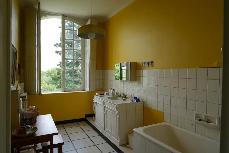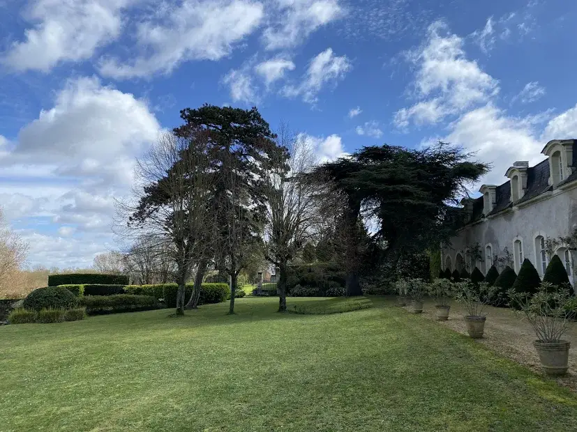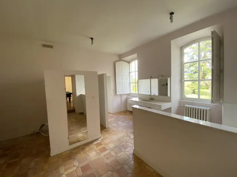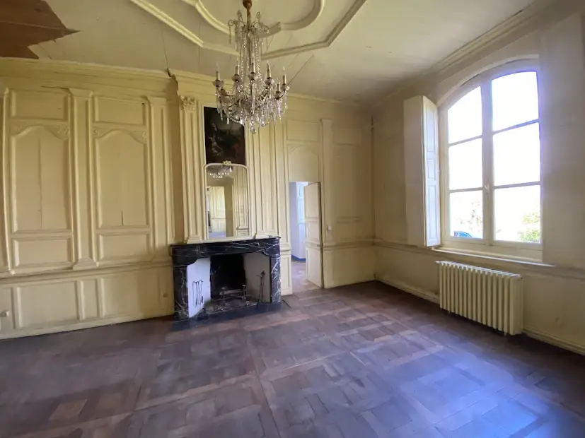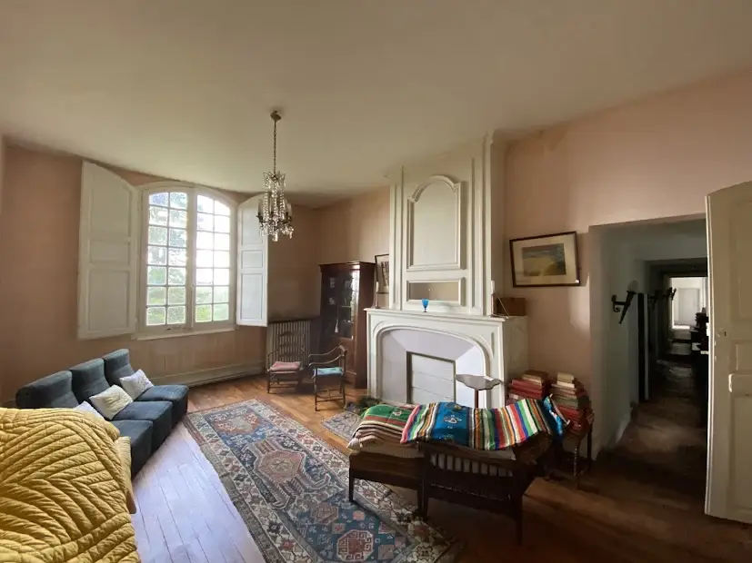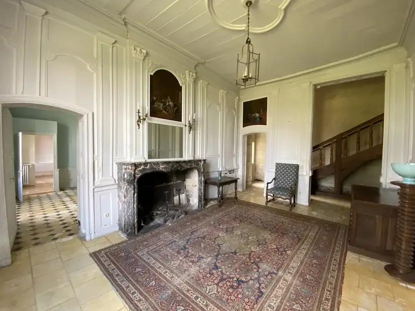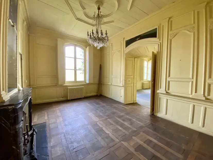 Elegant 17 th – 18 th century manor near Saumur and the Loire built on an eagle’s nest promontory, the property extends its long facade built in white tufa stones in the center of which rises the mansion on a floor and attics. On the ground floor, there are 5 reception rooms which follow one another in a row with their beautiful decorations of woodwork, terracotta tiles, fireplaces & painted overmantels, which give this house such a special atmosphere, to the point that a famous writer of American origin stayed there in the 1930s as reported in his memoirs… The outbuildings on either side form the wings of the main part, with an annex accommodation at the western end. The park is planted with beautiful trees around the property and goes up at the back, and an old swimming pool could be put back into service. SAUMUR is 5 km away and has an SNCF train station with connections to Paris-Montparnasse in 2.15 hours on average. PARIS is 325 km away, including 307 by motorway (A85 + A11). THE HOUSE (about 440 m2) Ground floor : height under beams approximately 3.70 m? Row distribution Main entrance 26 m2 and hallway with beautiful staircase with oak baluster and WC Western coast, -Large living room 40 m2 (pretty wood paneling, parquet, fireplace) -Dining room 27 m2 (pretty woodwork panels, parquet, fireplace) -Kitchen 19 m2 (counter, storage units) East Coast, -Small living room 22 m2 (wood paneling, parquet, fireplace), currently in bedroom -Small entrance and WC -Bathroom (bath, sink, shower) 22 m2 -Office-library (vaulted arch, fireplace) 40 m2 Access porch to the gallery of cellars at the back of the house. 1st Floor : A landing room of 28 m2 A hallway with cupboard leads to 3 bedrooms with parquet floor of 15, 19, 21 m2 and a bathroom A second corridor on tomettes distributes 4 other bedrooms from 15 to 17 m2, a shower room, a WC and a convertible attic Attics over garages 2nd Floor : Main attic of approximately 6.30m x 16.30m DEPENDENCY On the right, in front of the house Shed, boiler room (oil boiler) Garage (1 car) Garage (2 cars) On the left, in front of the house Access porch to the cellars Small shed (local mowers) GUARDIAN HOUSING (about 120 m2): Entrance into living room 33 m2, laundry room, WC, living room 22 m2, and upstairs, 3 bedrooms, 1 bathroom GROUND Pretty park of one hectare in an open position, planted with cedars, lime trees with a beautiful relief going up at the back of the house. A swimming pool (out of use) is located in a corner of the garden. A plot of half a hectare is located on the other side of the access road. Total cadastral surface for 1 hectare 58 ares 90 ca. Retrouvez toutes nos annonces sur notre site INTERNET :