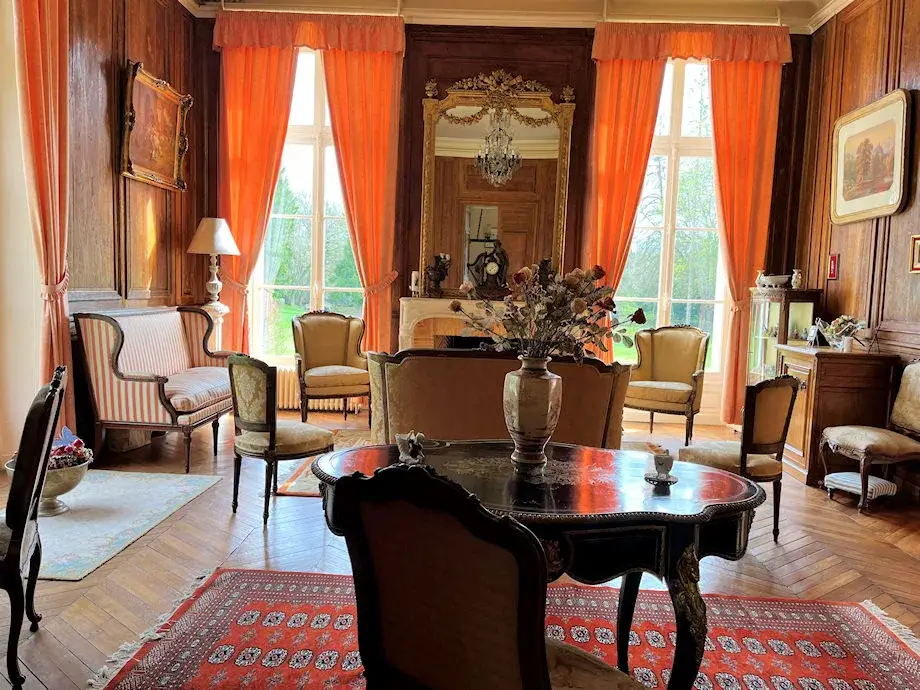 Property located on the outskirts of the Orléans Forest, approx. ten kilometers from the center town, including a 17th century Château of approx.365m² of living space in perfect condition. It consists on the ground floor of a large hall, an equipped kitchen, a dining room, a living room, a billiard room and an office. Shower room with toilet on half floor. Upstairs, a master suite with bathroom (bath + shower) and dressing room, 2 double bedrooms (currently bedroom + office) with shower room, a bedroom and a laundry room. On the second floor, old “maids’ rooms” to be rehabilitated. Cellars under the entire building.