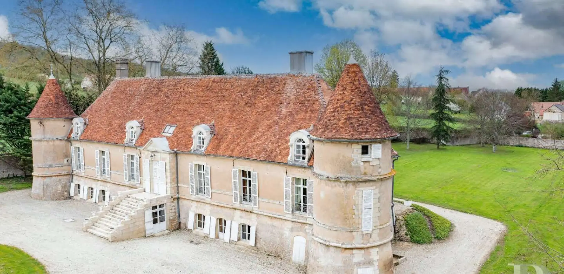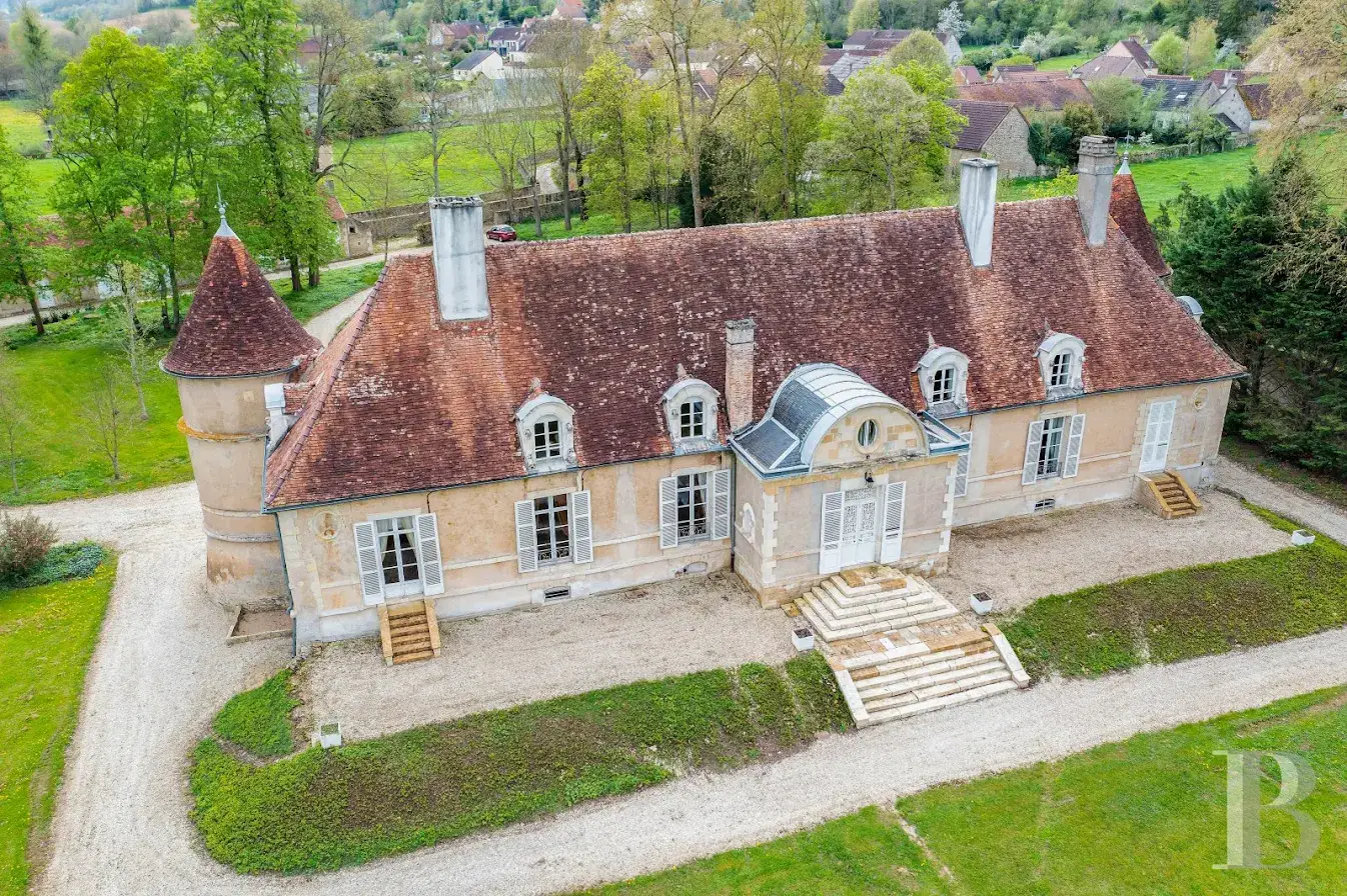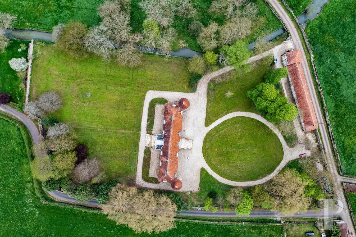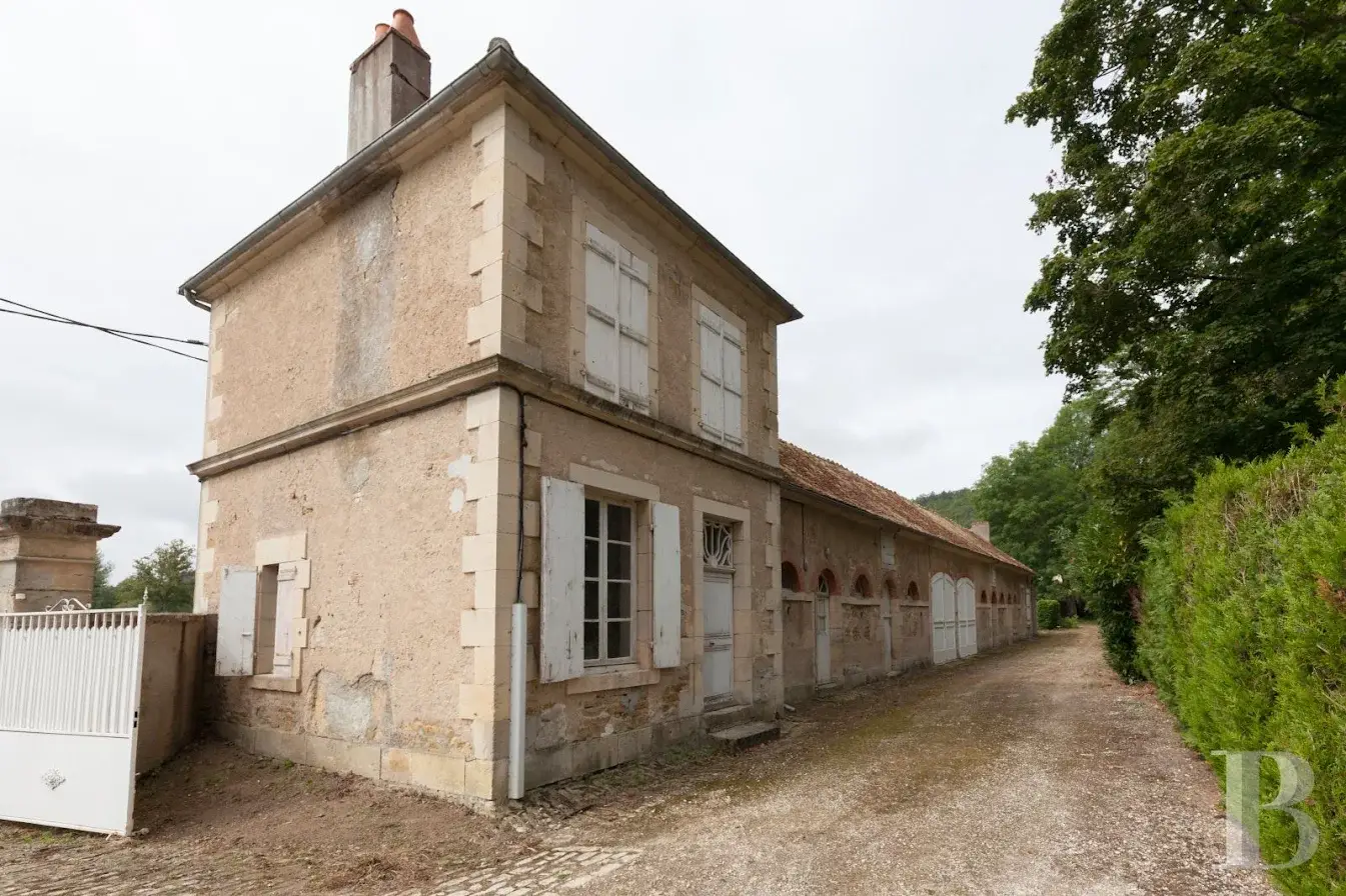 An impressive 18th century chateau, with garden, outbuilding and 5 hectares of grounds between Puisaye and Morvan in the Nièvre region. Set on the edge of a hamlet, the property is accessed via a small road which leads across a discreet bridge over a stream to the entrance gate. Hidden behind tall trees, the main dwelling can only be made out after entering the garden. Adjacent to the entrance, there is a building containing the caretaker’s accommodation, which is extended by a section used for agricultural purposes. A peaceful stream runs through the grounds.